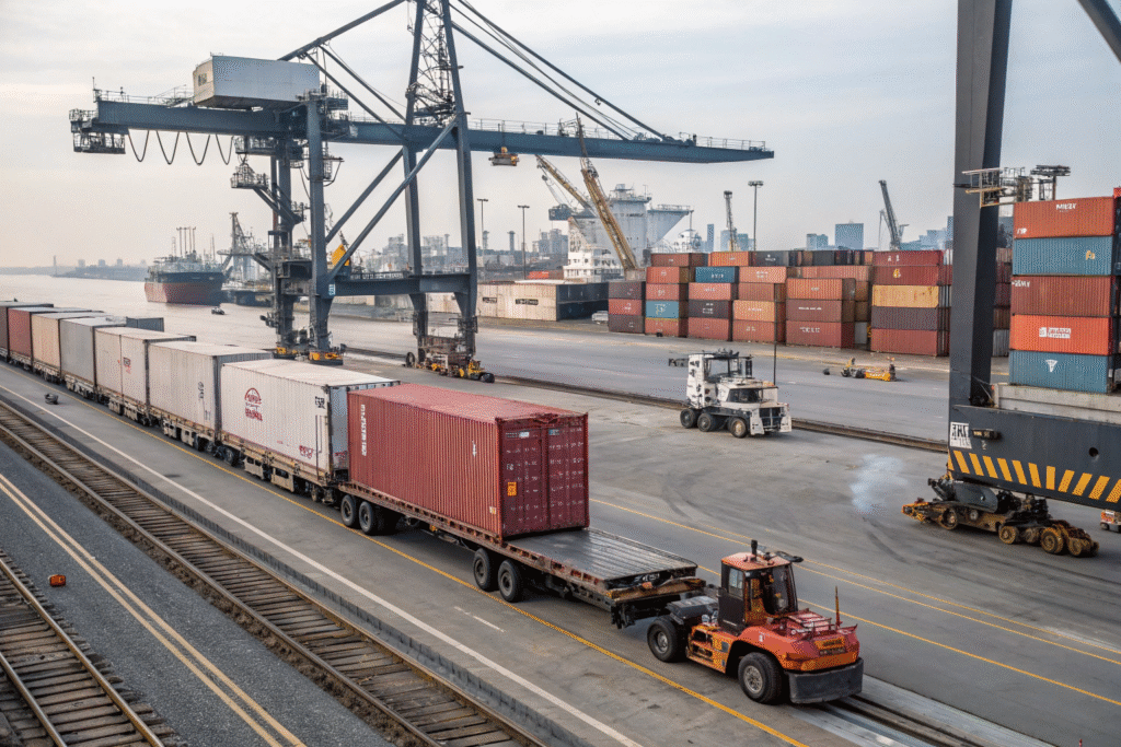 Upon arrival in the U.S., we leverage inland port connections and drayage networks to remove containers within hours—not days.