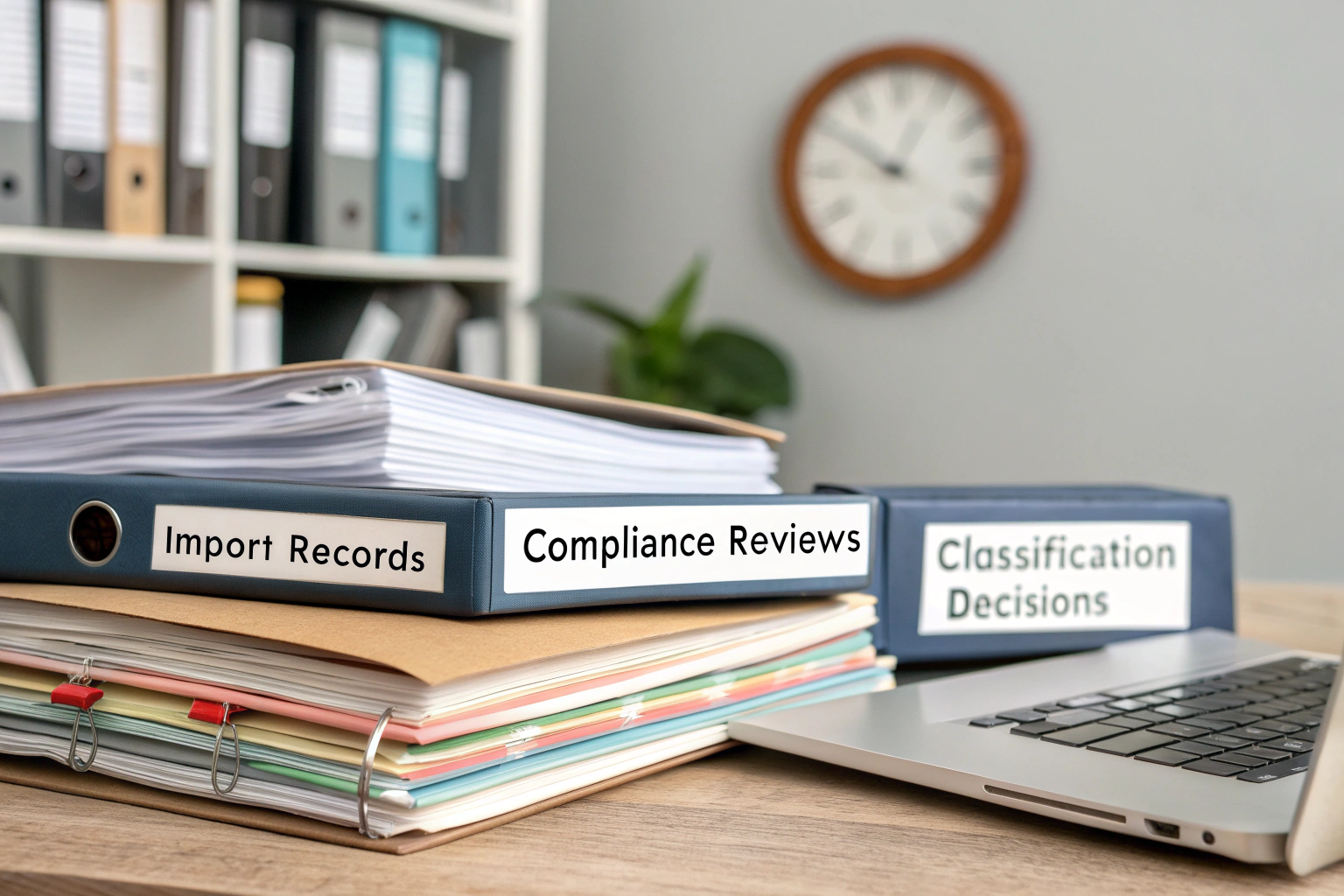 Classification records demonstrate reasonable care in HS code determination. Maintain product specifications, technical literature, classification worksheets, and ruling requests that show your classification methodology.