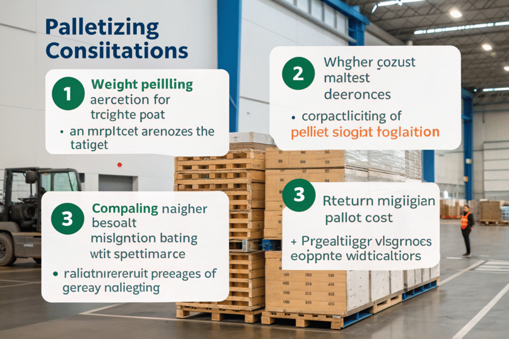 Product compatibility with palletizing varies by characteristics. Very small shipments, irregular shapes, or extremely fragile items may not benefit from standard palletizing approaches.