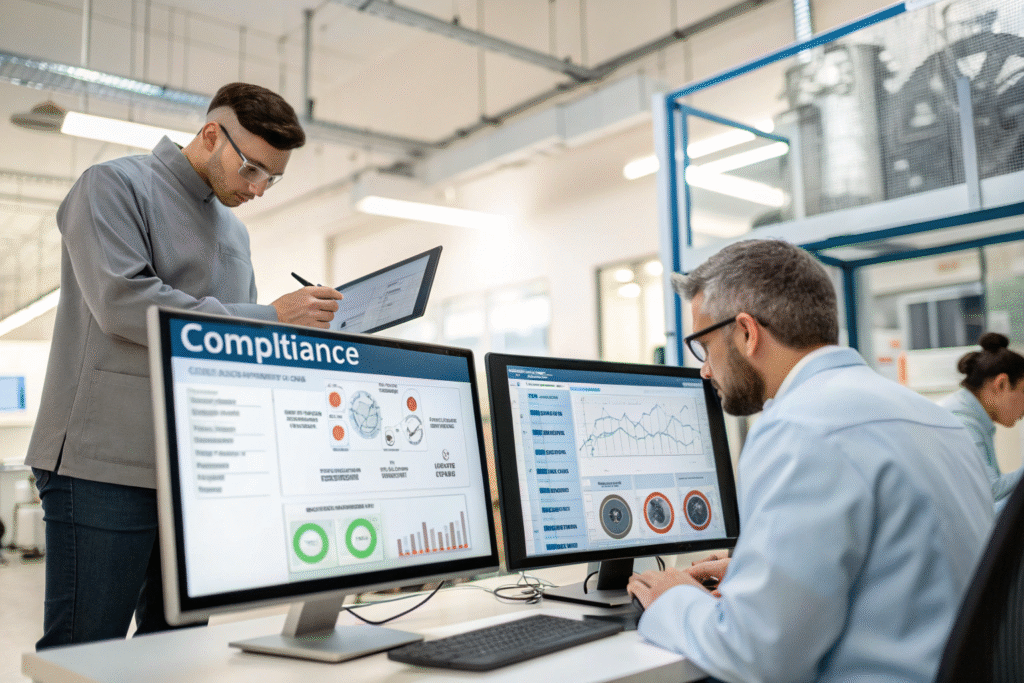 Production process controls ensure manufacturing consistency. Verify that workers follow standardized work instructions, conduct in-process inspections, and maintain equipment properly. Process control failures often cause compliance variations.