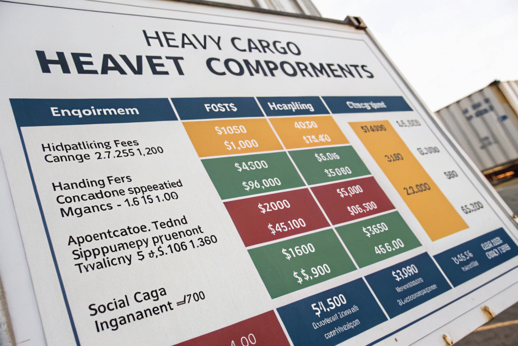Handling charges for heavy lifts are substantially higher. While standard containers might incur $200-300 in handling charges, heavy lifts can cost $2,000-10,000 per lift depending on weight and complexity.