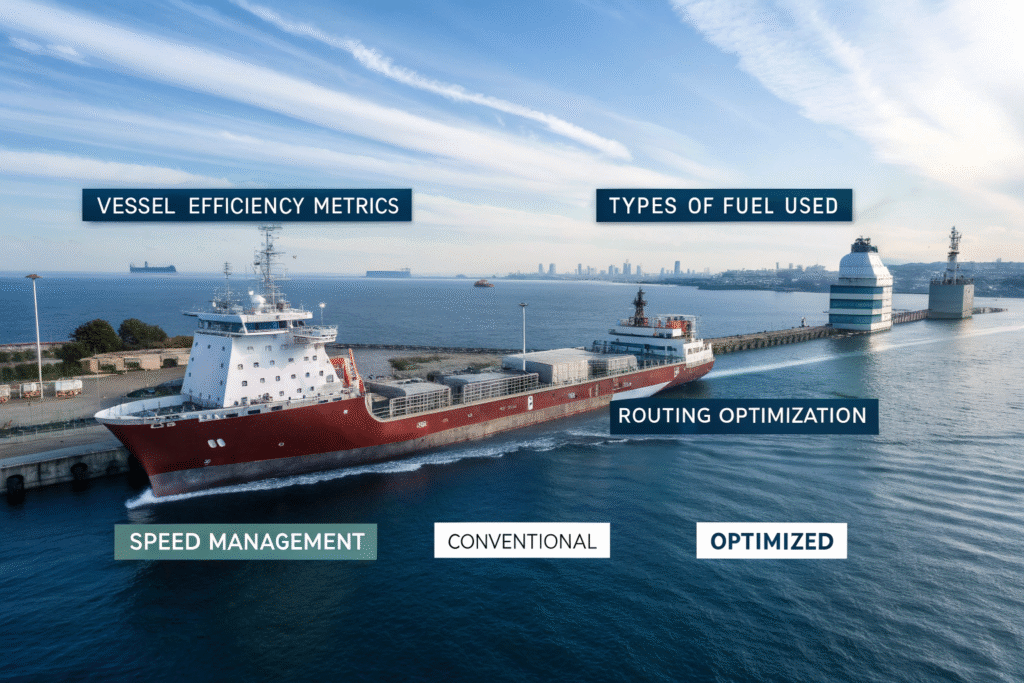 AI-powered optimization platforms analyze countless variables to identify the most efficient routing, speed, and vessel deployment strategies. These systems typically achieve 5-15% fuel savings without infrastructure investment.